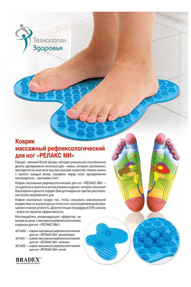 ОписаниеНа стопах расположены ключевые точки, массаж которых поможет снять усталость, улучшить микроциркуляцию крови, избавиться от напряжения в мышцах. Подарите себе бодрость и непревзойденную легкость с массажным ковриком для стоп.